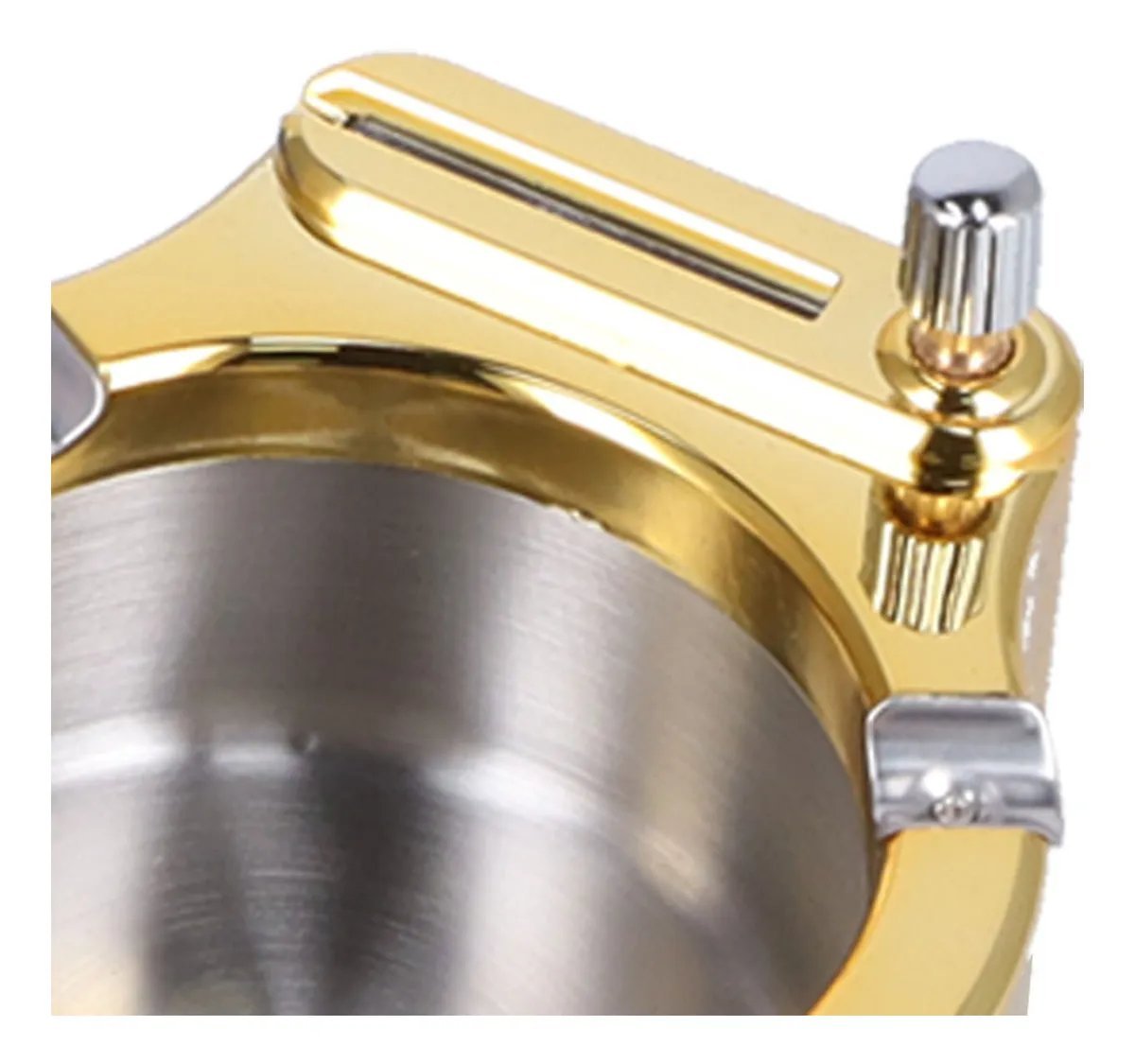 Cinzeiro multifuncional Este cinzeiro não só coleta fuligem, mas também mantém a mesa e o chão limpos. Mas também pode ser usado como isqueiro. Você não precisa mais carregar um isqueiro a qualquer hora e em qualquer lugar. Possui 3 slots, ranhuras de fumaça para uso de muitas pessoas, garantem a segurança do cigarro, evitando quedas. Com vareta deslizante oculta Há um fósforo de metal oculto na lateral do cinzeiro, é uma haste deslizante. E uma sala de armazenamento de combustível embaixo do fósforo de metal, gire a barra deslizante no sentido anti-horário e pode-se adicionar querosene. Fácil de usar Para o primeiro uso, raspe mais algumas vezes para raspar a cera protetora da pedra. O raspador é plano e o ângulo entre o raspador e a parte inferior da fuselagem é de cerca de 45 graus para acender. Material de alta qualidade Feito de aço inoxidável e ABS de alta qualidade, que é resistente a quebras, robusto e durável. Mesmo se você usar uma faca para arranhá-la, não causará grandes danos. Com design de ranhuras, pode colocar cigarros. Ampla aplicação Este cinzeiro é fácil de limpar, basta enxaguar com água.