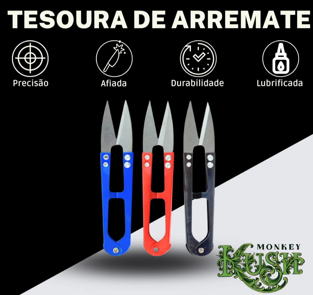 Tesoura e dichavador que garantem corte preciso e preparo uniforme.