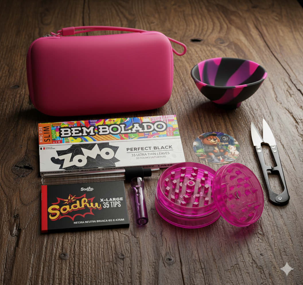 Viva a experiência completa com o Kit Tabacaria Premium, pensado para quem busca estilo, praticidade e qualidade em cada sessão. Todos os acessórios essenciais em um só lugar, com as melhores marcas do mercado nacional: Zomo, Bem Bolado e Sadhu — sinônimo de custo-benefício e alto desempenho.